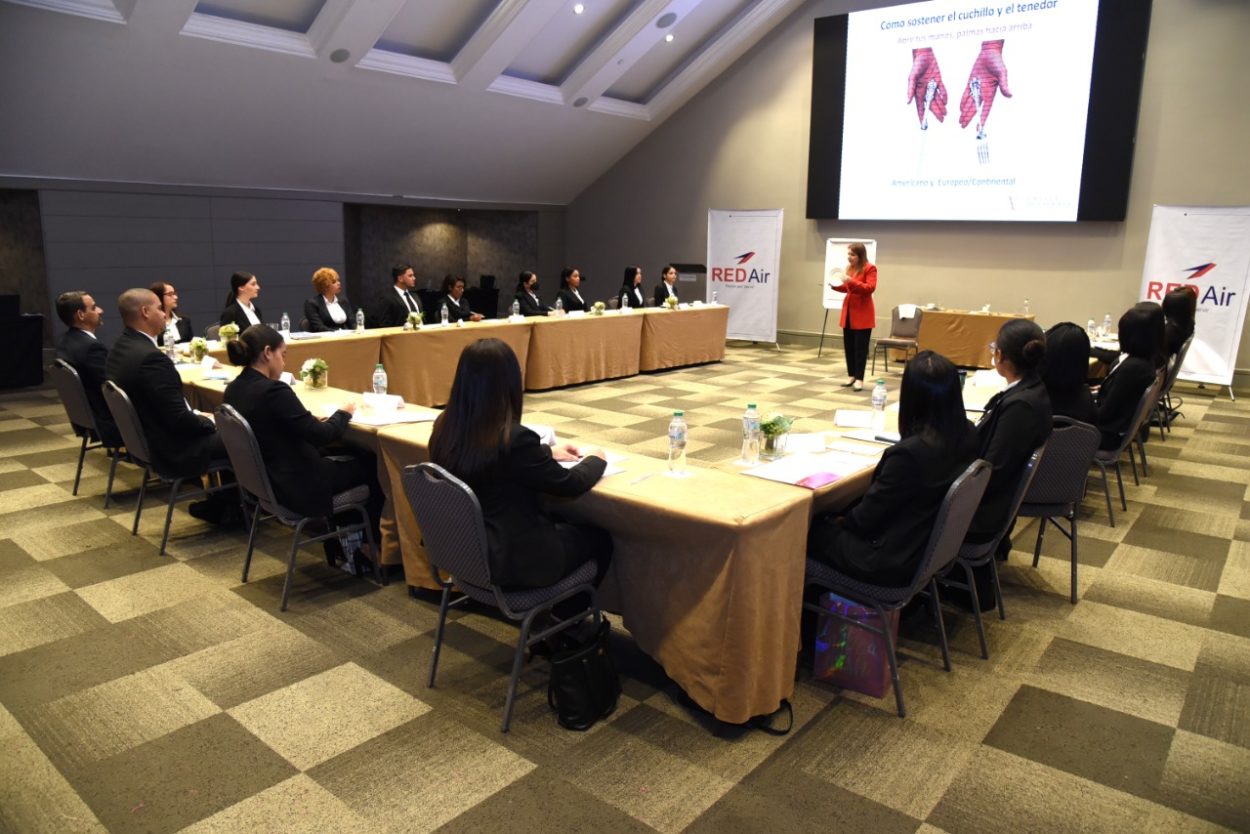 Santo Domingo, – Un total de 22 tripulantes de cabina recibieron formación en materia de protocolos de etiqueta e imagen corporativa, como parte de las capacitaciones que la aerolínea RED Air realiza a sus colaboradores antes de comenzar su trabajo.