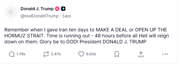 El mandatario advirtió que Irán tiene 48 horas para alcanzar un acuerdo o reabrir el estrecho de Ormuz; de lo contrario, aseguró que el país se enfrentará al «infierno», recoge el medio El País, de España.